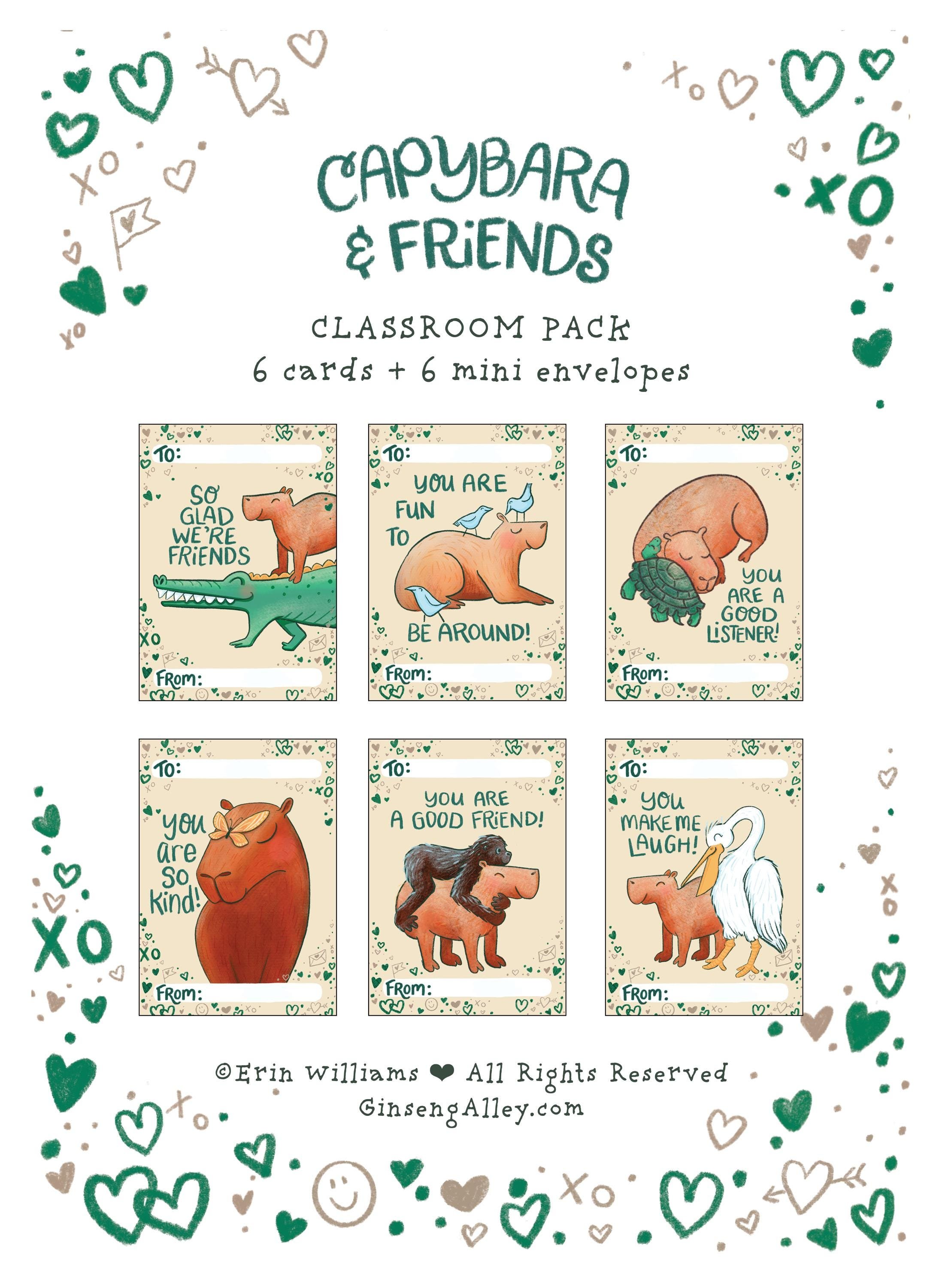 Capybara & Friends Classroom Mini Valentines (6pack)